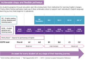 La certificación ISE (Integrated Skills in English) de Trinity es un examen contemporáneo que evalúa habilidades múltiples, diseñado para las personas que necesitan las competencias de la lengua inglesa para sus estudios. Poniendo énfasis en el uso real de la lengua y en la promoción del desarrollo de destrezas transferibles a los estudios académicos y al empleo, ISE evalúa las habilidades comunicativas necesarias para tener éxito en el siglo XXI.