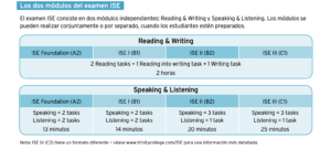 ISE evalúa la habilidad de los estudiantes para interactuar en inglés de una forma coherente y real, a través de tareas integradas de reading and writing y de speaking and listening.